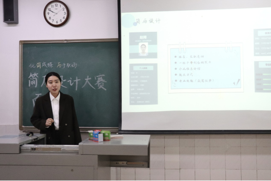 本次活动孔嘉欣获一等奖,赵寒、周鑫获二等奖,范琳倩、方昊、赵朔获三等奖,赵朔获仪容仪表奖,孔嘉欣、范琳倩、陈梓炫获简历设计奖,本次活动圆满结束。