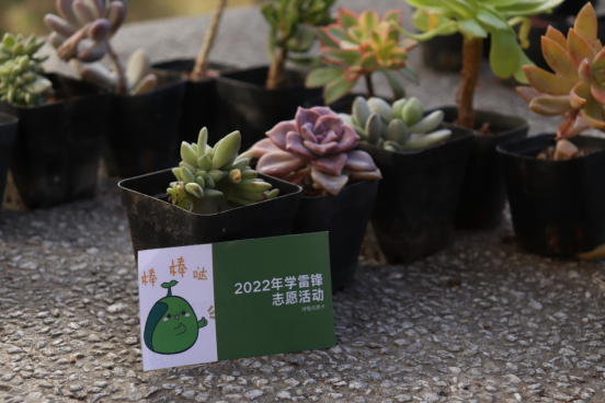 同学们通过参加生态环保知识答题,获得2022年学雷锋志愿活动绿植兑换卡,凭绿植兑换卡到生物楼前领取多肉小盆栽。这种方式大大提高同学们的积极性,并使得更多同学参与到了这次活动中,将环保理念内化于心,外化于行。