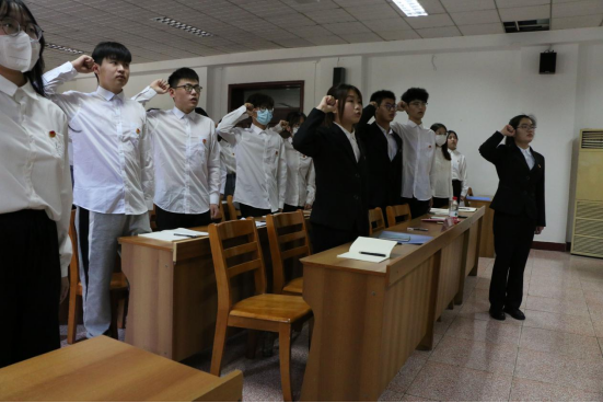 重温入团仪式活动在庄严的国歌声中拉开帷幕,全体同学在团委副书记刘淑晴的带领下重温入团誓词,认真倾听团组织代表张译友宣读《团章》中有关团员义务和权利的条款。随后,团员代表鹿潇笛作代表发言,发出不负韶华、不负时代的青春誓言。刘文静老师向团员代表们提出了几点要求,她希望团员青年们能够弘扬五四精神,厚植文化底蕴,做到知行合一,不断提高个人素质及能力。最后,在庄严的团旗下,大家高唱团歌,铭记入团初心,谨记团员责任,不忘初心跟党走。