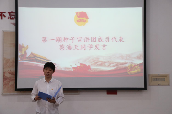 随后,第一期种子宣讲团优秀成员蔡浩天作代表发言。一方面,他总结过去的工作,在种子宣讲团成员的共同努力下成果显著,宣传工作切实提高了天天a片