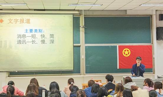 李文振老师以校园新闻报道基本原则与应用为主题,用幽默诙谐的语言为大家讲述了文字报道与图片报道的相关知识。首先,李老师介绍了新闻稿的基本格式和写作基本规范。李老师指出写作是对思维的一种锻炼,公文书写的基本原则是“先逻辑,后文采”,做到把事讲清楚,把话说漂亮。随后,李老师重点从标题、内容、结构、语句四个方面详细介绍了新闻稿的书写要求,并结合相应的文案进行分析,直观展示新闻稿的写作和修改技巧。李老师强调,一篇出色的新闻稿必须做到有条有理、有根有据、有声有色,写作过程中要分主次、有详略。最后,李老师援引大量校园新闻图片向大家介绍了摄影技巧,即“动静相宜拍两张、第一时间抢状态、多姿才能多彩”。李老师的教授素材丰富、直观生动、贴近实际,引发培训班学员的积极响应和互动。
