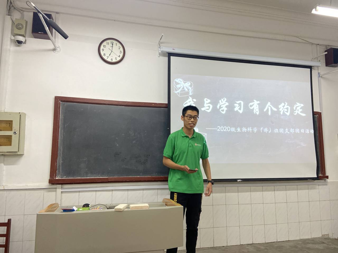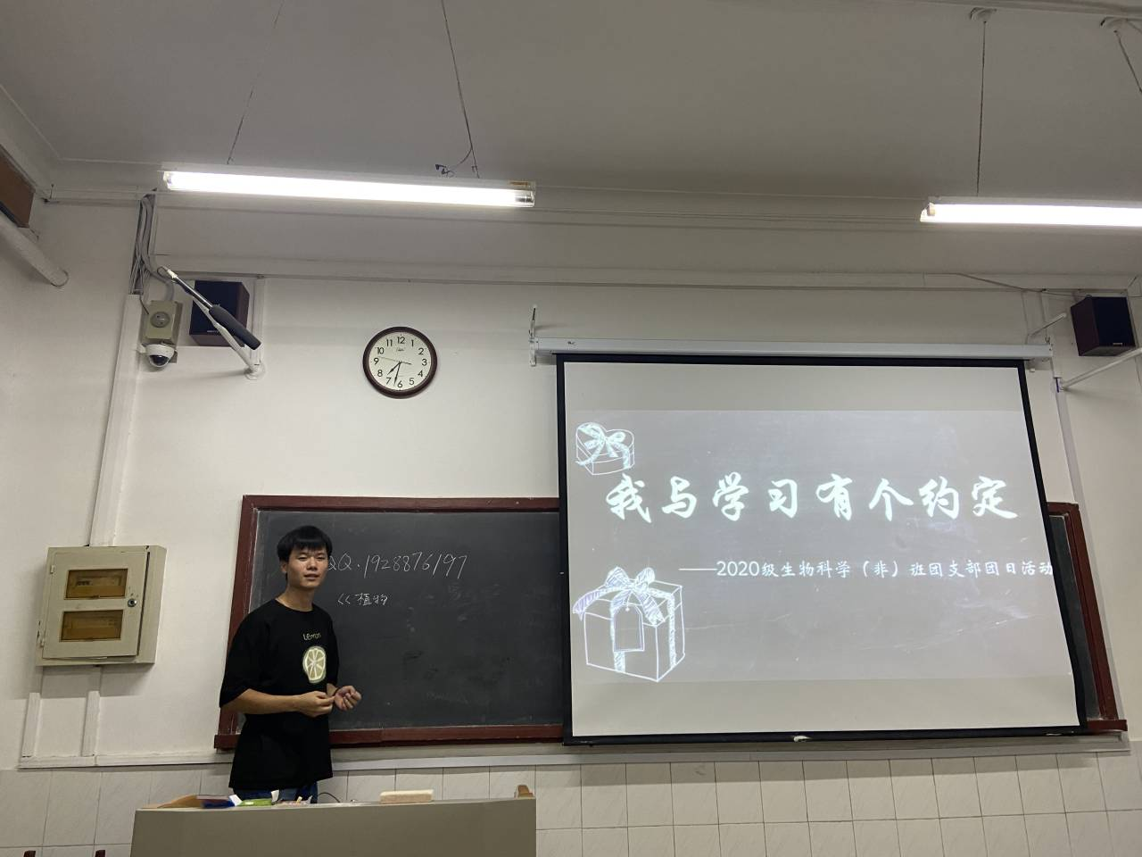2020级生物科学(非)班团支部“我与学习有个约定”主题团日活动在生物楼332教室成功举办。本次活动邀请到2019级袁博、焦来正两位学长,支部全体成员参加了此次活动。