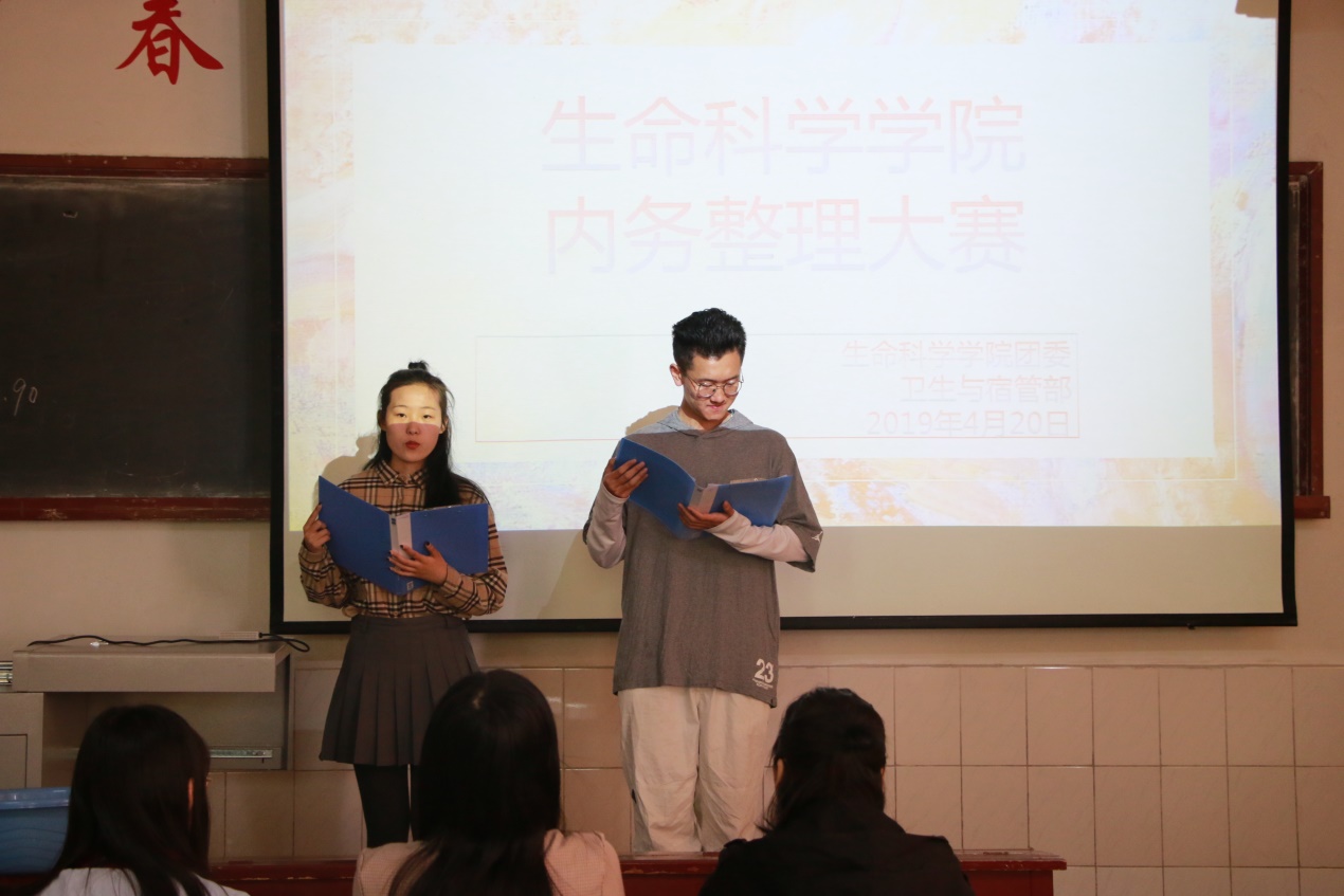 同学们比赛前早已跃跃欲试了,在“快手理乱麻”这一环节中,一上场便表现出了不俗的实力,铺平、折叠、修正,每一个动作都分外引人注目。在接下来的环节“生活小妙招”中,选手们依次上场展示了自己的宿舍生活小技巧,利用自备的道具,直观形象地在现场展示了如何利用有限的空间收纳更多的东西,快速地叠衣服以及分收垃圾等等一些实用的小妙招,令在场的同学赞叹不已。在最后的加分环节中,选手们朝气蓬勃、挥洒热情,大显身手,展现出自己不同的一面。观众们都看的津津有味。