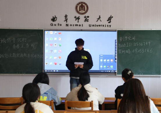 为深入学习领会习近平文化思想,全面落实《山东省大中小学思政课一体化建设实施方案》相关举措, 3月30日“诚信伴我行、青春正当时”诚信主题实践教育演讲活动在232教室举办,2023、2024级同学参加了本次活动,社团管理部部长、心理权益部,办公室副部长担任本次评委。