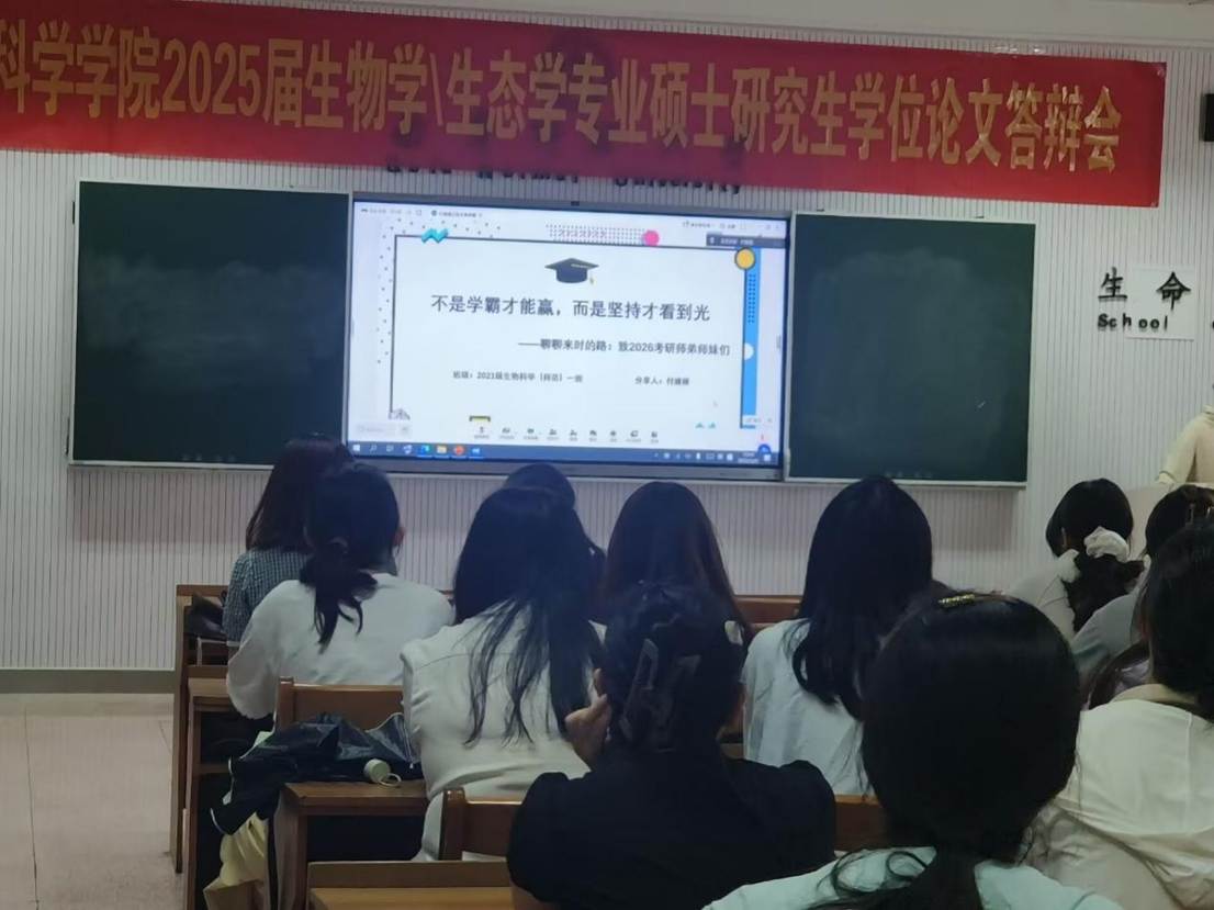 团委学生会学习部于5月25日上午在生物楼232教室举办了第三场“逐梦研途:考研经验交流与备考策略指导会”。本次活动邀请了王浩洋师哥,考研至暨南大学生态学;李喆珺师姐,考研至山东大学基础医学;付媛媛师姐,考研至东北师范大学生态学。