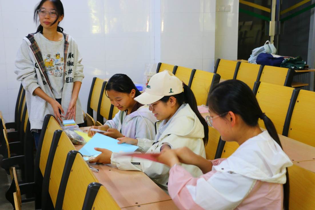 活动以“感恩与创意”为主线,参与者通过裁剪、绘画、书写等形式,将真挚情感倾注于贺卡制作中。彩色卡纸在巧手折叠下化为立体花朵,水墨晕染勾勒出温馨画面,文字寄语饱含深情……风格各异的作品诠释了对母爱的独特理解。活动过程中,有的同学专注设计贺卡纹样,有的反复斟酌祝福语句,还有的与同伴分享成长故事,现场氛围温暖动人。