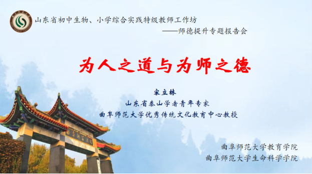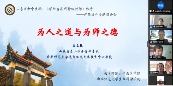 优秀传统文化教育中心教授宋立林作题为《为人之道与为师之德》的会议报告。山东省初中生物、小学综合实践特级教师工作坊全体成员及天天a片