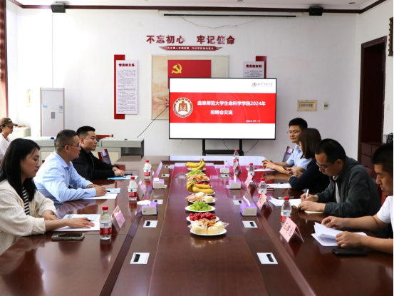 会上,王仁君详细介绍了学院发展历程、学科专业建设、人才培养、科研创新、优秀校友等相关情况,并重点介绍和推介了天天a片 2024届毕业生。各用人单位依次介绍了本单位基本情况、招聘需求、福利待遇等,并对往年引进的曲师毕业生给予了高度评价,期待引进更多优秀曲园学子,与学校学院共同搭建就业平台、助力毕业生就业、实现双赢。随后,王仁君代表学院与青州市外国语学校、临沂衡大高级中学、临沂明德实验学校签订了“天天a片 学生就业基地”协议,李志广为三家用人单位授牌。在交流环节,学院领导与沭阳县教育局、山东焦点福瑞达生物股份有限公司、临清市清华园学校、聊城银河高级中学、山东裕龙石化产业园发展有限公司、平邑曾子学校、济南朴新教育科技有限公司、济宁孔子学校、齐鲁制药有限公司、济南协和双语实验学校围绕人才培养、就业形势、毕业生发展、深化合作等进行了充分的沟通和讨论。