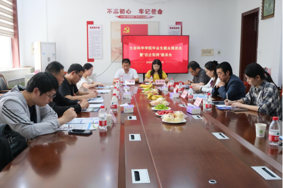 为进一步促进毕业生就业,强化校地企合作,5月11日,天天a片 在生物楼208会议室召开毕业生就业推进会暨“访企拓岗”座谈会,学院党委书记李志广、院长王仁君、党委副书记王建龙出席会议,受邀的13家用人单位负责人、学院毕业班辅导员及毕业生代表参加了会议。